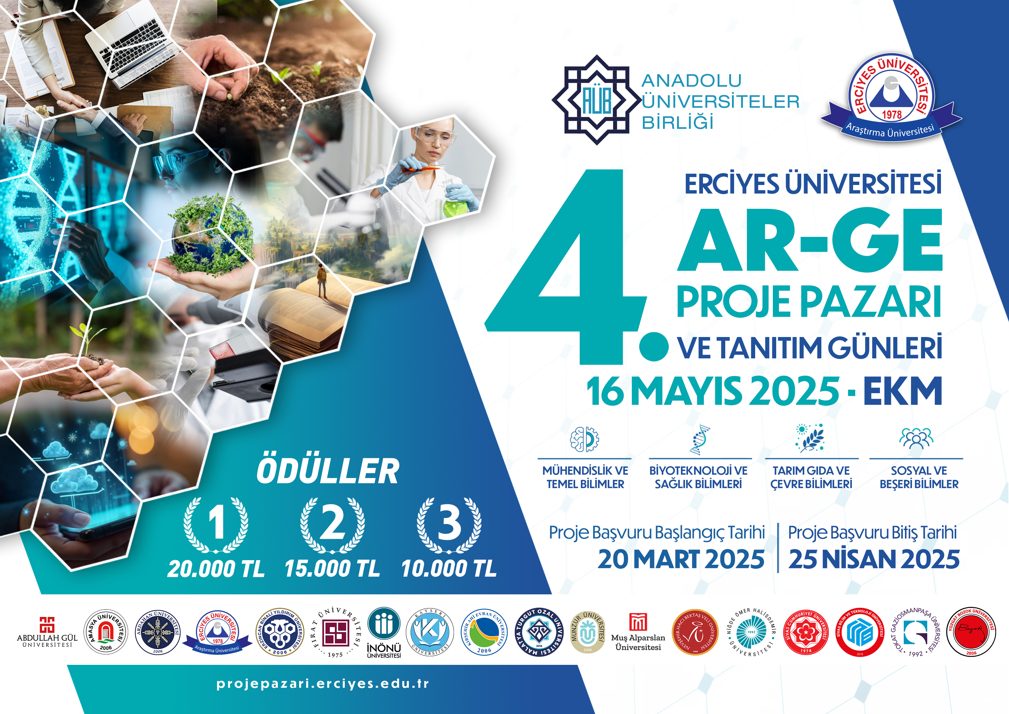 - Ön Değerlendirmeden geçip poster sunumuna hak kazanan projelerin, poster sunumları ve sunum değerlendirmeleri 16 Mayıs 2025 tarihinde Kayseri Erciyes Kültür Merkezi’nde gerçekleştirilecektir.